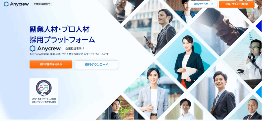 Anycrew(エニィクルー)は、フリーランスや副業希望者と企業をつなぐ業務委託型のマッチングプラットフォームです。特に、マーケティング、営業、財務、人事などのビジネスサイドの案件に強みを持ち、幅広い職種の案件を取り扱っています